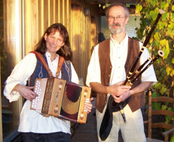 KukuruzTraditionelle Folkmusik mit Elke-Charlotte Pflock und Wolfgang Fries. Wir spielen traditionelle Melodien aus verschiedenen Ländern wie z. B. Irland, England, Deutschland und Frankreich auf den unterschiedlichsten Instrumenten, wie z.B. Harfe, Dudelsack, Gitarre, Mandoline, Low-Whistle, diatonisches Akkordeon, Tin-Whistle, Querflöte und Percussion. Bei YouTube finden Sie einige Kostproben unserer Arbeit. Kukuruz bedeutet Mais. Und Mais ist eine im 15. Jahrhundert aus Mittelamerika eingeführte, zu den Süßgräsern gehörende Getreidepflanze, deren Anbau sich über die ganze Welt verbreitet hat. Auch wir wollen unsere Musik über die ganze Welt verbreiten. Wir fangen erstmal mit Baden-Württemberg an! |
